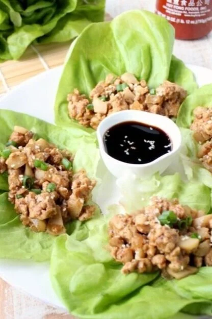 I skip the Chinese 5 spice and ginger, and if you don’t have water chestnuts that is ok too. Romaine has been hard to find some weeks, but we have found serving it over Thai Rice Noodles is equally yummy!